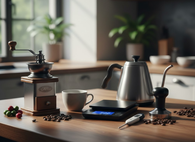 هل سئمت من القهوة المنزلية التي لا ترتقي لجودة مقهى فيينا؟ السر لا يكمن فقط في جودة الحبة، بل في الأدوات التي تستخدمها. للانتقال من محب للقهوة إلى صانع قهوة محترف (باريستا منزلي)، تحتاج إلى هذه المجموعة الأساسية من الأدوات التي تضمن الدقة والتحكم في كل قطرة.